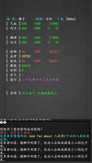 大唐修仙录是一款玄幻修仙题材的高自由度网络养成角色扮演游戏,根据当年风靡网络的文字MUD游戏改编而来的手机MUD网络游戏,游戏内没有任何的图片,完全以纯文字的方式,展现武功、法术、妖魔、神仙,修仙,求道的一个RPG游戏,如果你的想象力丰富,喜欢看修仙小说,且有耐心,那么这是一个适合你的游戏。