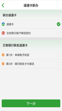 【新办】含速通卡、北京银行账户绑定签约、已有银行联名卡申请电子标签及激活写卡的在线新办业务。在线提交验证电子资料,线上完成签约支付,一键轻松预约,可享北京市域内上门安装服务;