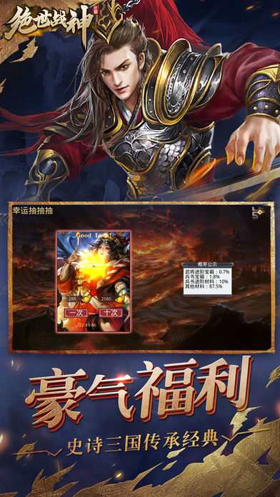 三国绝世战神是一款三国争霸游戏,汉失其鹿,天下共逐之,看乱世末年三分天下,谁能一统中原大地,谁能成为下一个开过帝王,我在这里等着你加入。