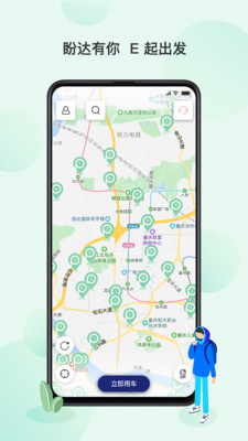 1、车辆选择:登录盼达用车APP,点击“立即用车”,系统推荐就近站点,选择满足您出行需求电量的车辆,提交订单开始用车。