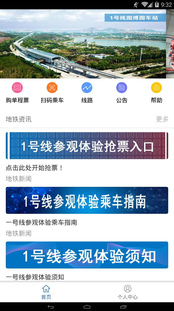5、在个人中心界面点击“首页”,进入首页界面,在首页界面点击“1号线参观体验抢票入口”进入活动页面