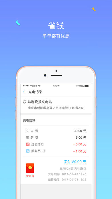 线上支付:充电完成后,不需要刷卡付款,直接选择自己喜欢的线上支付方式即可支付充电费用。