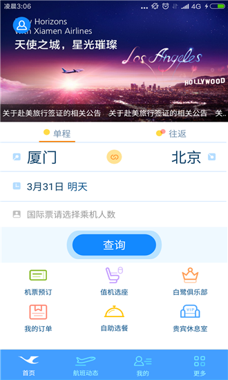 机票预订:直接通过app进行机票的预订,不用担心没有票的问题发生!