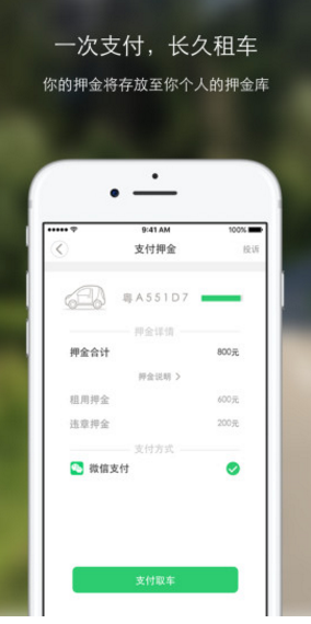 一次支付,长久租车:你的押金将存放至你个人的押金库