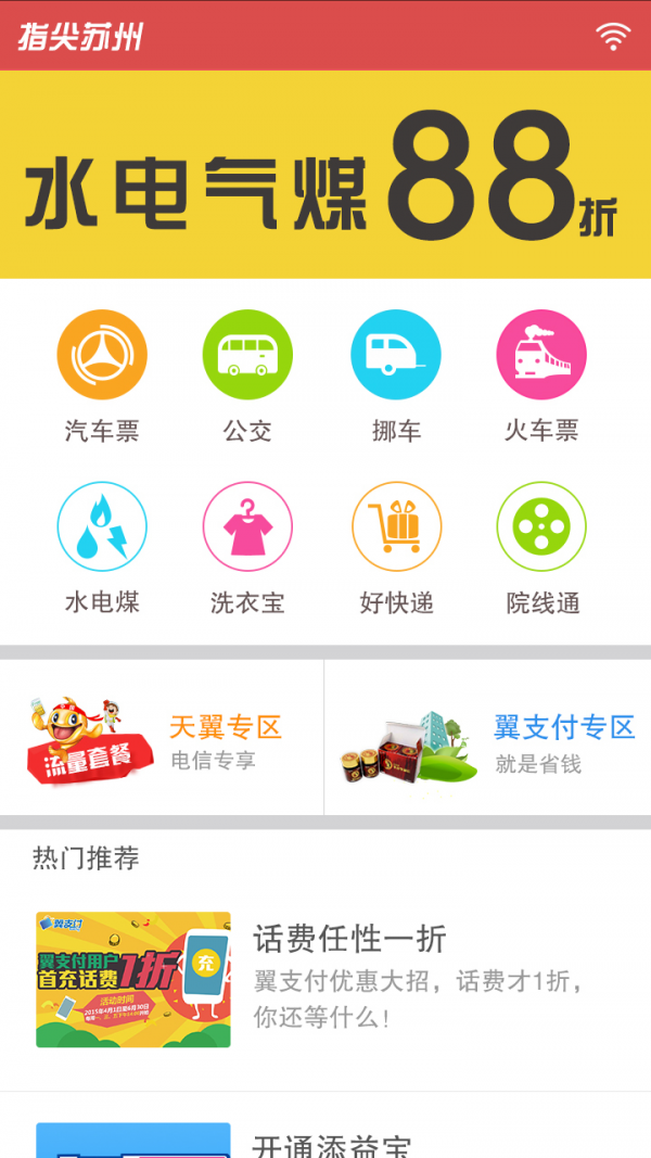 指尖苏州app是由苏州电信推出的城市门户客户端,提供汽车票优惠便捷购,火车票省心省力订,回城返乡畅享无忧,更有舌尖美味;城市公交小助手,让您出行无忧;同城活动大搜罗,畅游嗨翻天!指尖苏州,每个苏州人都用得着的客户端。