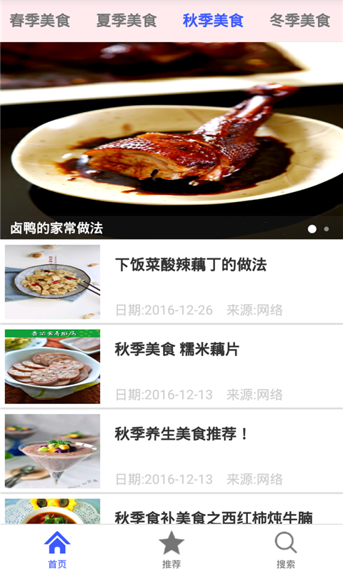四季美食是一款有营养的美食推荐应用,精选春、夏、秋、冬四个季节最鲜美的食物推荐给热爱生活的你,让味道和营养像四季一样丰富。