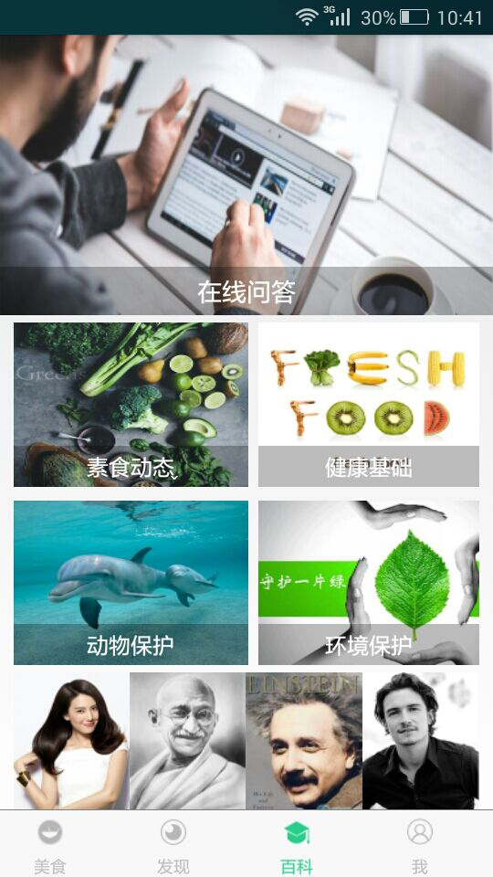 1. 专业的、定制化的健康素食生活指南——根据个人身体健康状况高度定制化的一周健康食谱,专业系统的健康资讯内容;