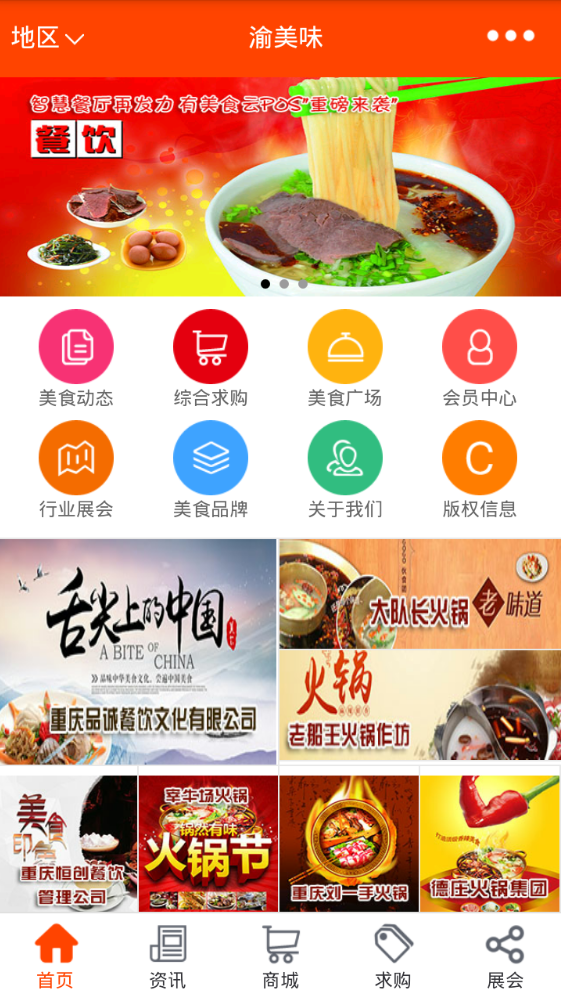 渝美味是中国信息化产业发展中心认证的诚信云商移动互联网客户端;为广大从事美食行业的朋友以及企业提供了良好的信息交流与发布平台;海量特色美食行业新资讯、热门美食商城及配菜求购中心、优秀美食商家、展会信息、会员中心等多个模块为您带来全面的美食美味资讯,欢迎使用渝美味!