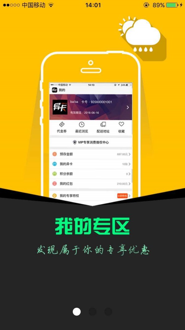 低至1折~还有限时抢购等、神秘会员特权等惊喜等着你~会员可以随时查看每一笔消费账单,确保透明消费,如会员遇到消费投诉,异卡创新提供消费一键维权等金牌售后体系! 异卡~用心服务每一位尊贵会员~
