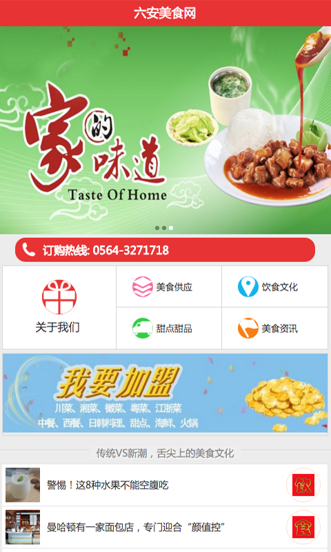 六安美食网是一个专业六安美食的资讯网站。网站包含资讯中心,六安美食,饮食健康,在线商城,招商加盟,图片展示等多个栏目。让你随时随地随身的了解安徽特色美食信息。网站以便捷的浏览方式,了解近期的资讯信息,为广大客户展开了一个丰富的六安美食画卷,时时刻刻的为您更新,让您爱不释手。欢迎大家前来使用六安美食网。