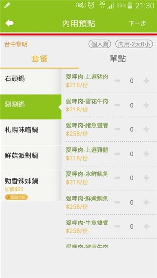 还没入桌即可透过APP完成点餐,让您可以快速享用到安心涮嘴的餐点。