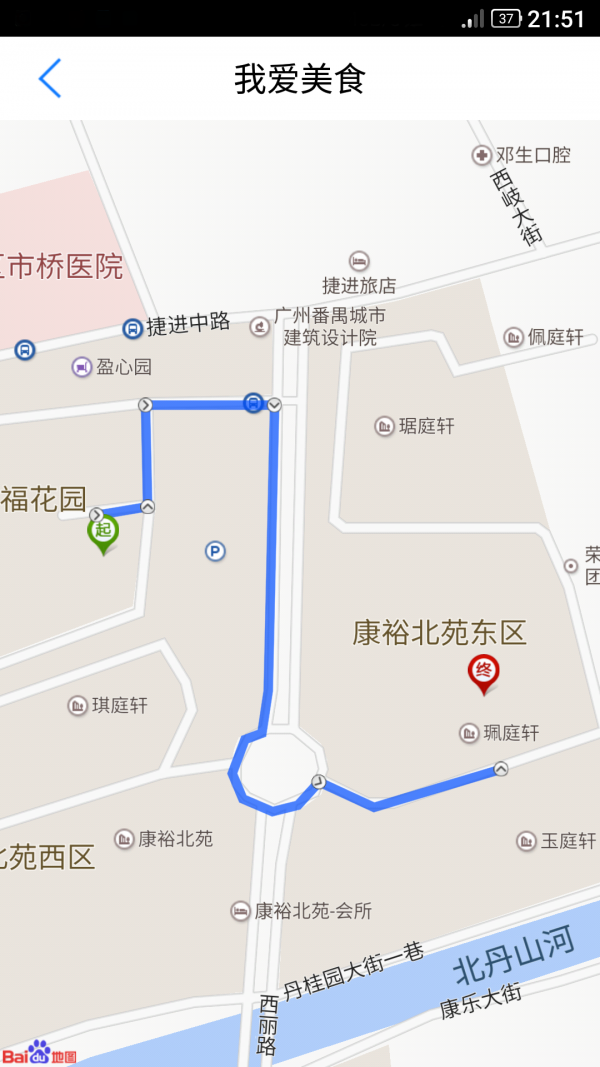 3、显示附近各家特色美食的信息,具体地点,店铺的门前照片等。