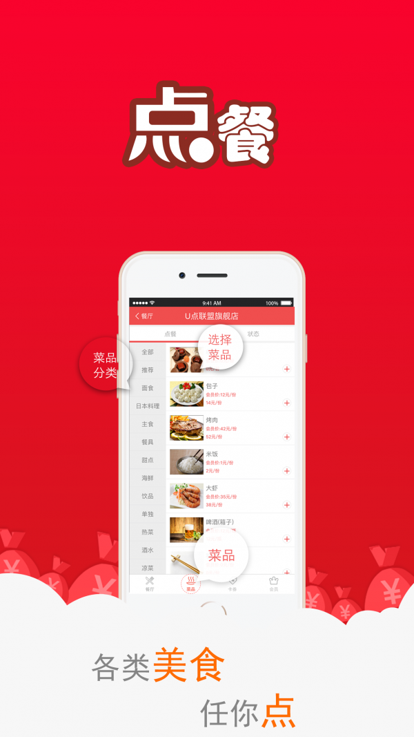 4.app实时点餐,各色菜品由你点,分类列表一目了然,点完即刻下单,让你无需等待。