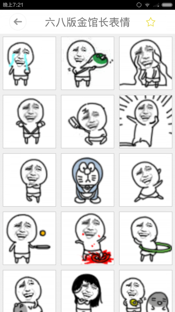 金馆长表情包app指各种聊天过程中用于传递情感心情的小头像图片,而金馆长表情包则是指把某一特定的分类金馆长表情包打包成一个简易的安装包,是您聊天斗图的好帮手。