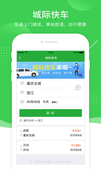 这是一款由重庆市政府和市交委准许打造的唯一道路客运联网售票服务平台,是重庆市公众出行的辅助平台,在这里我们已经接入重庆地区的75个汽车站资源,并且实现了二级车站的全面覆盖。
