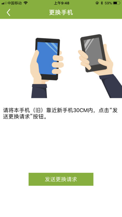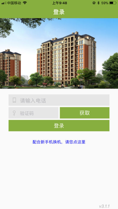 2、在登录界面点击“配合新手机换机,请您点这里”;