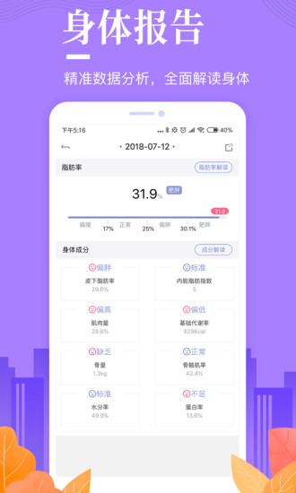 通过设备对于自己的身体进行数据的测量,从而通过数据打造专属的减肥瘦身服务!