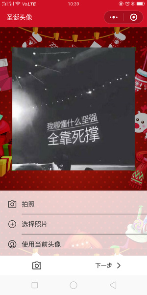 然后微信圣诞小程序会默认使用的微信头像开始制作微信圣诞帽子头像,如果你是使用自己的头像制作的话,直接点下一步即可。