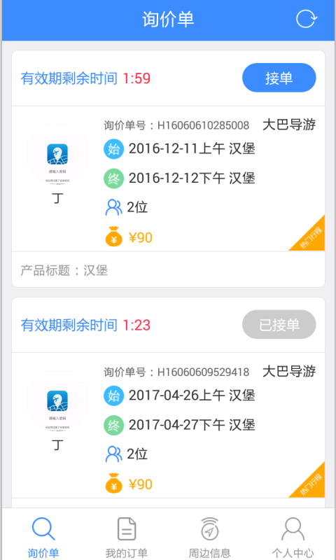 导游可直接看到国内旅行社及个人客户的导游需求, 通过自主报价,获得订单;