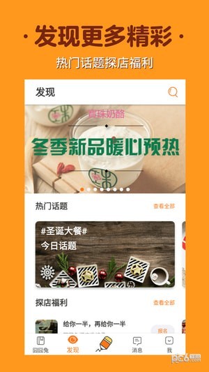 来app获取并参加最前沿的美食话题,牛奶火锅/通过牛蛙/网红奶茶等等一网打尽!还可以发小视频哦~赶紧成为朋友圈最棒(pang)的小吃货吧!