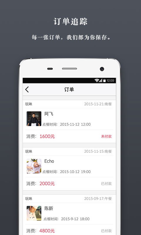 【推荐】:每一位私厨都是行家【订单】:每一张订单,我们都为你保存【支付】:多种支付方式,带上手机就行【操作】:丰富的个人页面,让您操作更加便捷