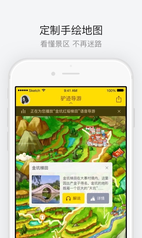 龙脊梯田app是一款智能语音导游软件,包括智能景点讲解、定制手绘地图、游玩线路推荐和交通指南等功能,让你拥有不一样的旅游体验。