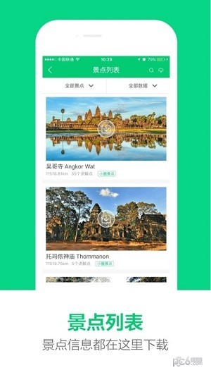 ·离线下载:在柬埔寨还在担心你的流量吗?所有吴哥景区资料、语音、图片、卡通地图都可以下载呢,出游之前先把要去参观的景区全部下载,到了吴哥照样可以实现走到哪里听到哪里,把手机放口袋,谁还要出去玩拿着手机听讲解。