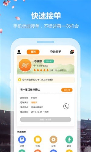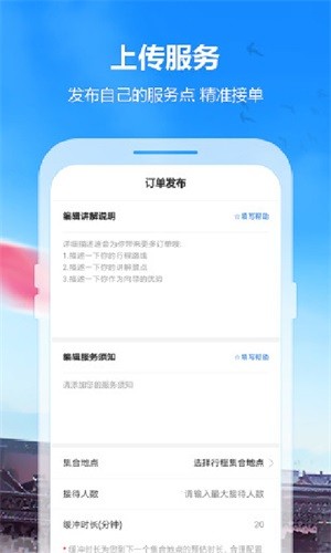 app是专为导游提供的加单软件,为导游和游客提供双向服务,双方实现线上对接,导游完成订单将会获得收入,非常方便快捷。
