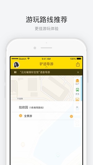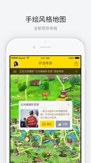 · 语音导游:专业主播录制的景点讲解及到点播报,多语种支持,走到哪儿听到哪儿。