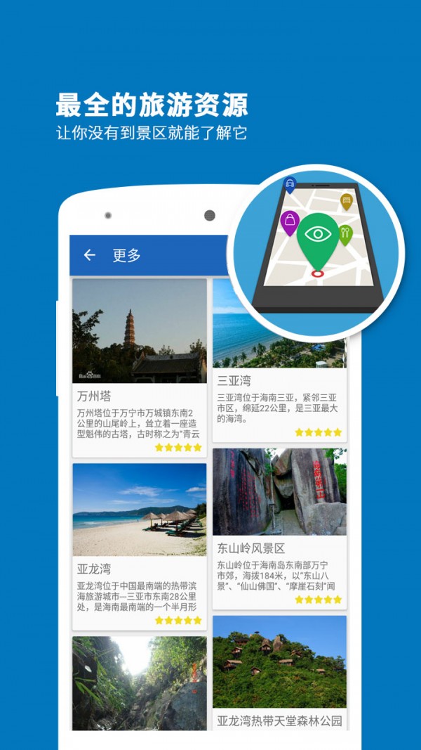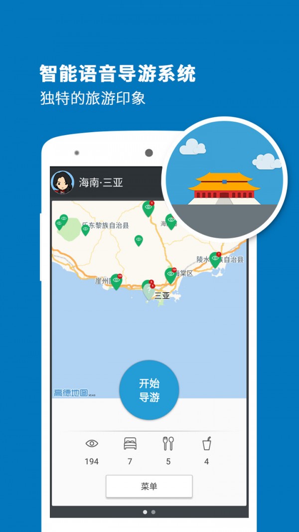 三亚导游app是一款智能导游应用软件,有了三亚导游app,就等于拥有了一个私人导游,随时为你语音播报景点详情,还可以查询景点门票、交通、住宿等信息,对于打算去三亚旅游的朋友来说是个不错的选择。