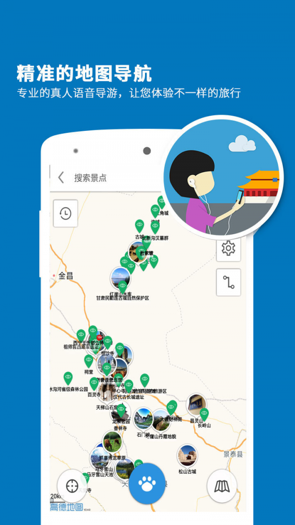 导游-独创的步行和行车导游双模式随您选择,通过GPS定位为您精准播报每个景点的历史文化和内涵