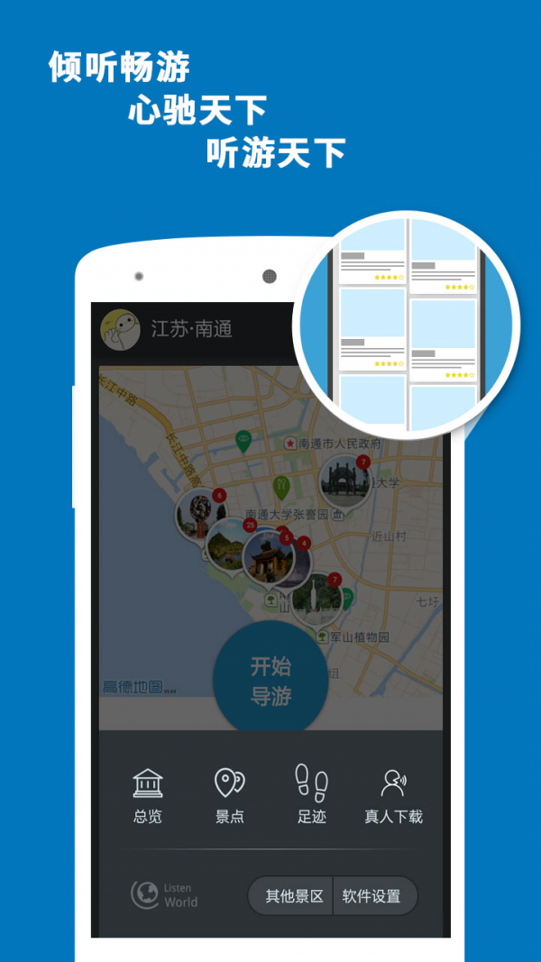 南通导游app:专业的智能语音导游系统,专为喜欢自由行的旅行爱好者而设计。携手科大讯飞,带给您独特的南通印象。