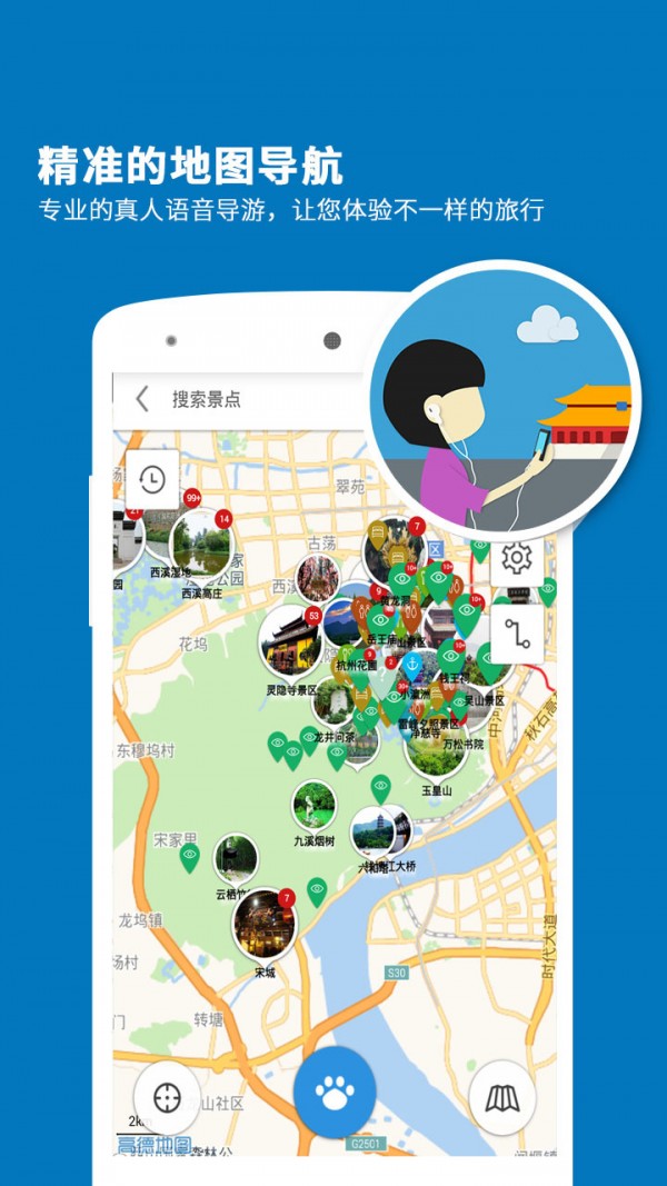 导游-独创的步行和行车导游双模式随您选择,通过GPS定位为您精准播报每个景点的历史文化和内涵
