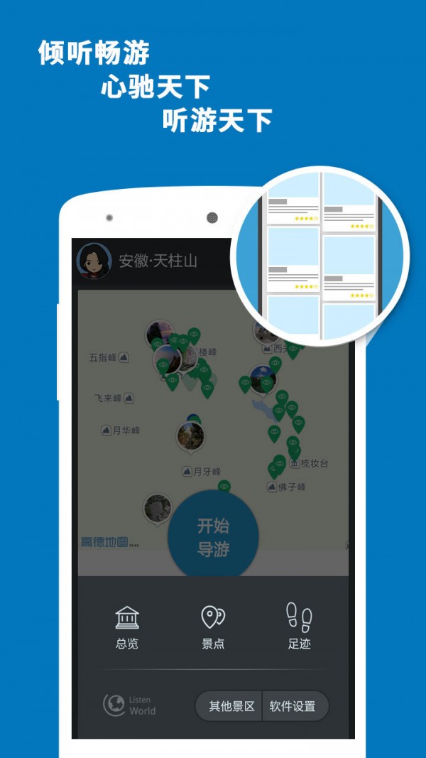 导游-独创的步行和行车导游双模式随您选择,通过GPS定位为您精准播报每个景点的历史文化和内涵