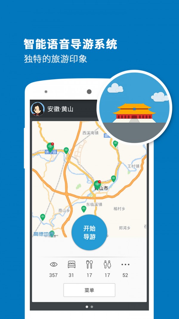 导游-步行和行车导游双模式随您选择,通过GPS定位为您精准播报每个景点的历史文化和内涵