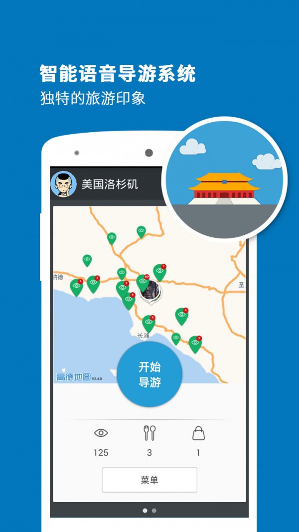 洛杉矶导游app是一款智能语音导游系统,专为旅游爱好者设计,为用户提供门票、住宿、交通等一站式旅游服务,为用户推荐最适合的景区旅游路线,下载洛杉矶导游app,享受不一样的旅游体验。