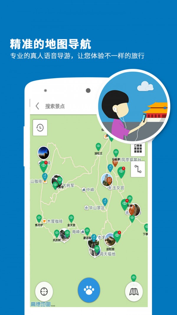华山导游app是一款旅游出行应用,具有智能语音导游功能,可以随时为你播报景点详情,还可以查看景区旅游线路,查询交通住宿等信息,让你旅途更自在。
