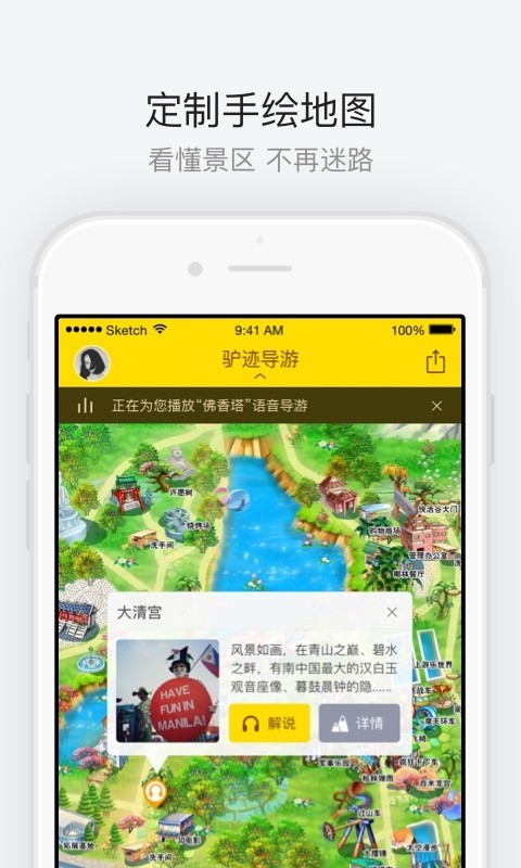 语音导游:专业导游景点讲解,边看边听景点故事。