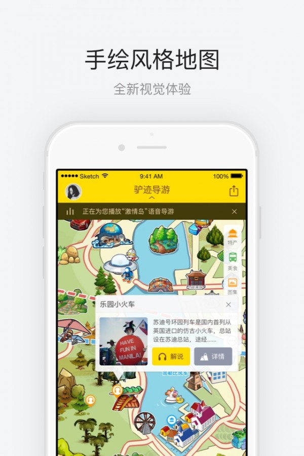 语音导游:专业主播录制的景点讲解及到点播报,多语种支持,走到哪儿听到哪儿。