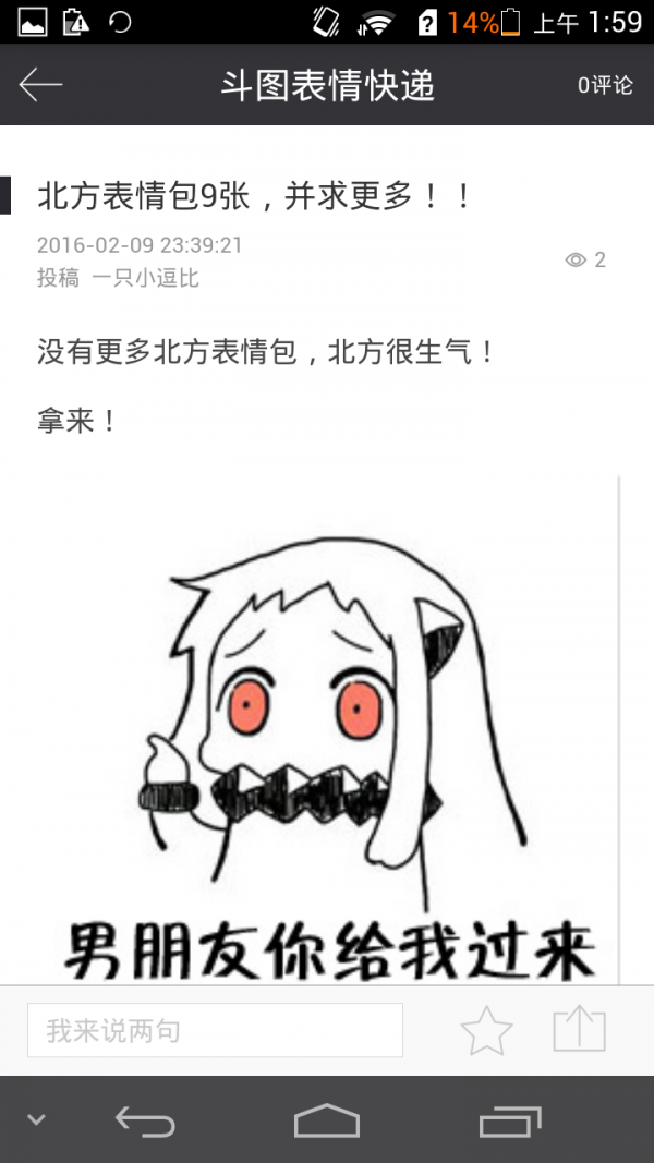 斗图表情快递app是一款趣味表情应用,斗图表情快递app为用户提供大量的趣味图片,满足用户们的斗图需求,各种有趣的图片,让聊天充满乐趣。