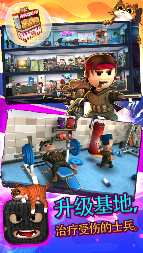 军事基地的物品升级与超酷的互动设施:印钞机、鱼缸、“小猫咪、乖猫咪、绒绒球”以及其它真正的军事玩具。