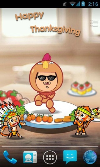 全球首创微乐自由壁纸,带来手机壁纸和视觉交互的革命!微乐自由壁纸,有自由,才个性!微乐自由壁纸感恩月,鸟叔携手大师兄悟空同庆感恩节!PSY鸟叔穿上火鸡肉衣,狂跳江南舞曲;大师兄悟空印第安装扮,酋长刀叉备战,口水开始喷溅~~一盘如此盛宴的感恩美食,自由壁纸倾情感恩巨献!Happy Thanksgiving to Everybody~~献上微乐感恩礼!手机的自由桌面,把你喜欢的一切自由组合摆放、随意调节大小。本壁纸已经内置微乐引擎,安装便捷,下载即用。喜欢微乐,只需要一眼。用想象力、创造瞬间点亮屏幕!海量动态高清,自由壁纸桌面主题;超抢眼特效,自由添加;个性装饰,随意组合;动态、静态,智能切换,更加省电;立刻下载,升级成自由壁纸!微乐自由壁纸,有自由,才个性!
