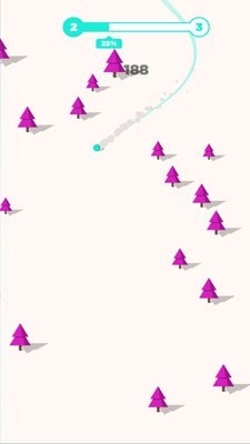是一场控制小球竞速闯关之旅,你需要控制小球,躲避前进途中各种树木以及障碍物,皑皑雪山,蔚蓝天空,控制小球穿梭在林海雪原。
