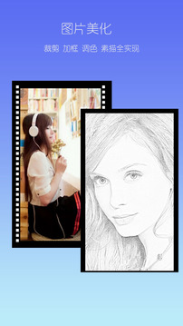 支持图片的裁剪,旋转,加照片框,做各种效果。比如试试独特的素描效果。