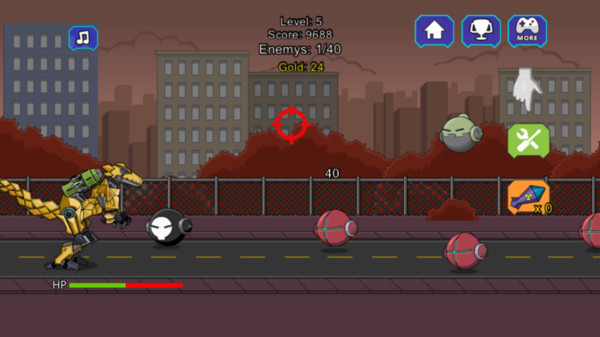 你的任务是制作一个机器巨齿龙(又名斑龙或巨龙),帮助人类抵抗外星机器人的进攻,收集金币,升级你的机器巨齿龙,增强武器。