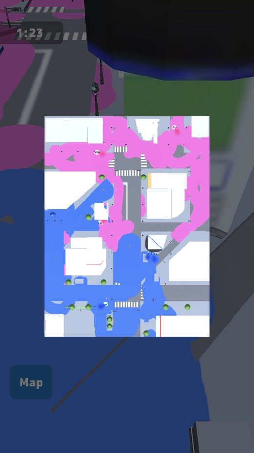 2、趣味十足的竞技的玩法,控制着你的喷漆罐将城市涂上自己的颜色;