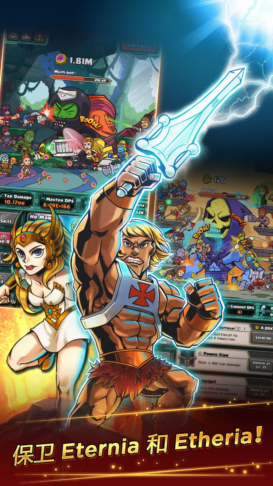 4、呼唤20多名He-Man的同伴,包括大家熟悉的She-Ra,Man-At-Arms,和Teela帮助你在战争中取得胜利