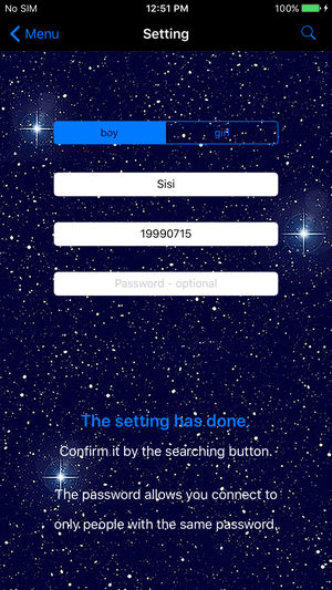 确认爱情的用户向周围的异性提出对话,如果得到对方的欢迎,通过蓝色的方式进行交流。