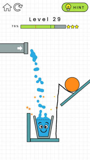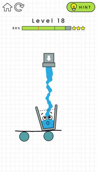 玻璃很难过,因为它是空的。你的工作是画一条线,让玻璃杯充满液体,然后再笑一笑!