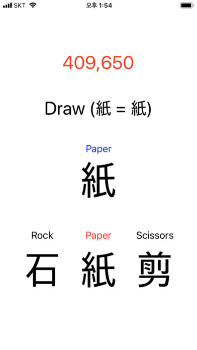 RPS中文是轻石头剪刀游戏中国象形图。触摸对应于rock(石),paper(纸≒布),scissors(剪)的汉字来玩游戏。赢得的越多,得分越高。当您续订高分时,等级(道力)会上升。
